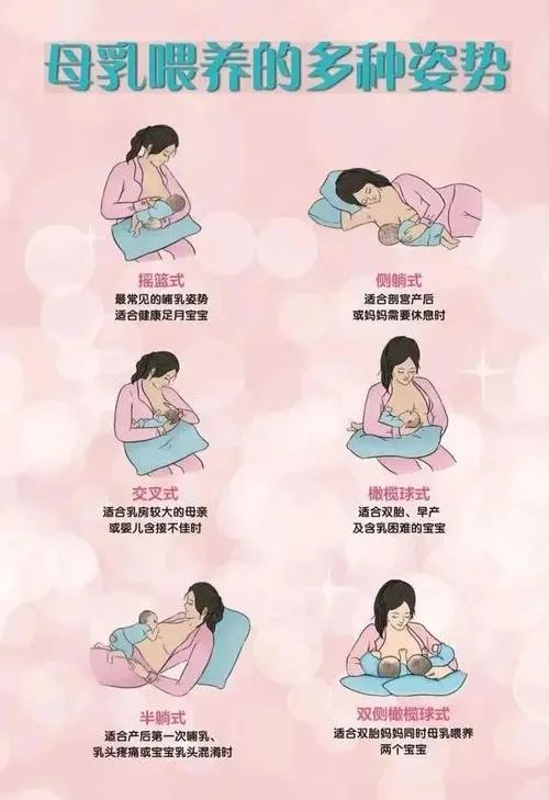 哺乳时间以5~10分钟为宜。哺乳的时间和频率与婴儿的需求以及妈妈感到奶胀的情况有关。刚分娩的妈妈身体虚弱、伤口疼痛,可选用侧卧位喂奶。每次哺乳后应将宝宝抱起轻拍几下,以防溢奶。